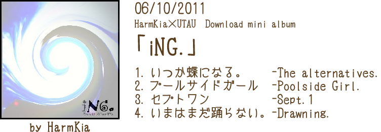 ■WEBコンピレーション -09/03/2011 ほのか鳴コンピレーション企画『ほのか、恋心。』 「フラニーと花。」で参加 ■コンピレーションアルバム -07/08/2012 欲音ルココンピレーションアルバム『ALEXANDRITE』 「フェイド」で参加 -11/02/2014 滲音かこい&灯下はこ、によるデュエットミニアルム『蟲の威を借る』 「ゲットバイ」で参加
